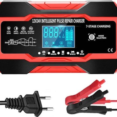 Ανορθωτής μπαταρίας αυτοκινήτου DP1210, 12V 10A – 24V 5A, 180W, φόρτιση 7 βημάτων, 4 λειτουργίες, μαύρο με κόκκινο